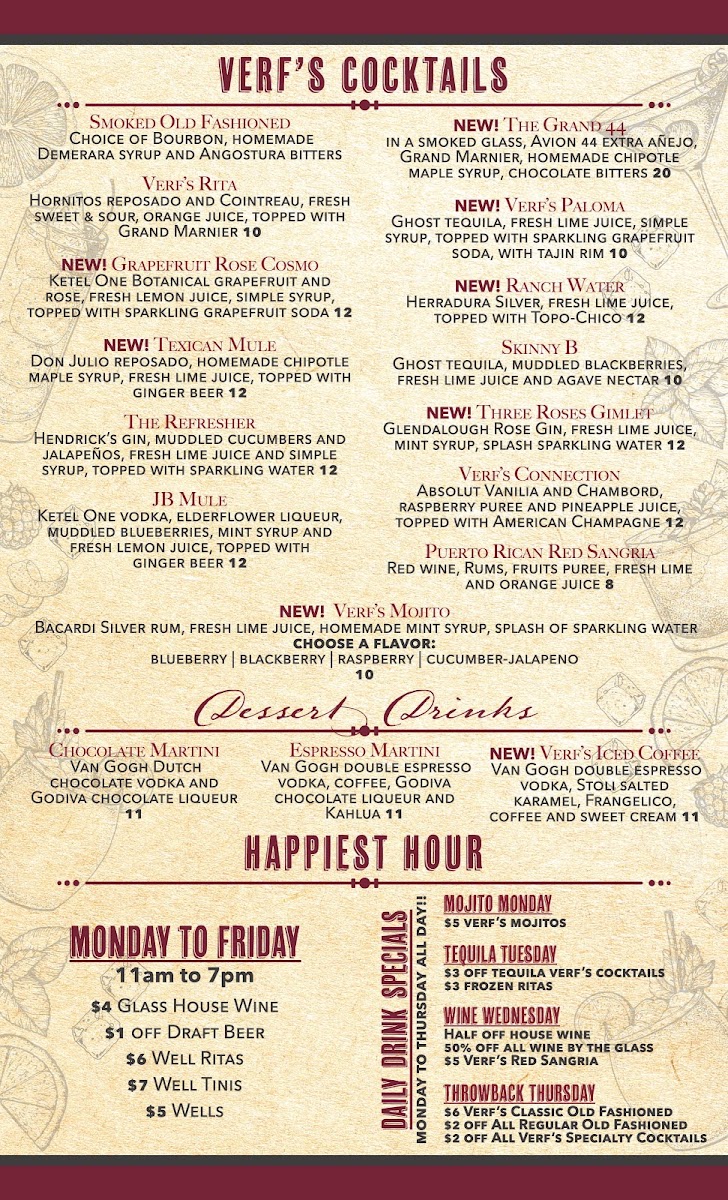 With warm service and a commitment to quality, Verf's Grill & Tavern promises an inviting atmosphere and memorable meals that are not to be missed!